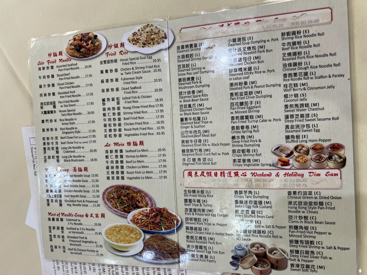 The menu at Golden Seafood Restaurant offers a thoughtful selection of traditional Cantonese dishes, ideal for sharing in a relaxed, communal setting. From classic dim sum items like steamed shrimp dumplings and roasted pork buns to hearty entrees such as Peking duck and beef chow fun, the offerings reflect the comforting, familiar flavors Cantonese cuisine is known for.